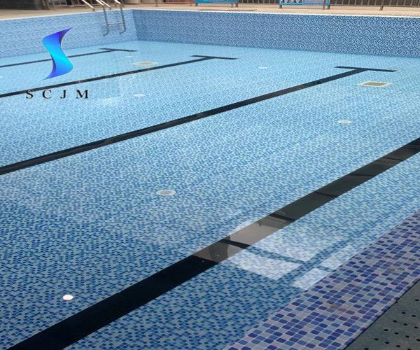 浙江省室外小區(qū)游泳池改造防水膠膜定制圖案案例